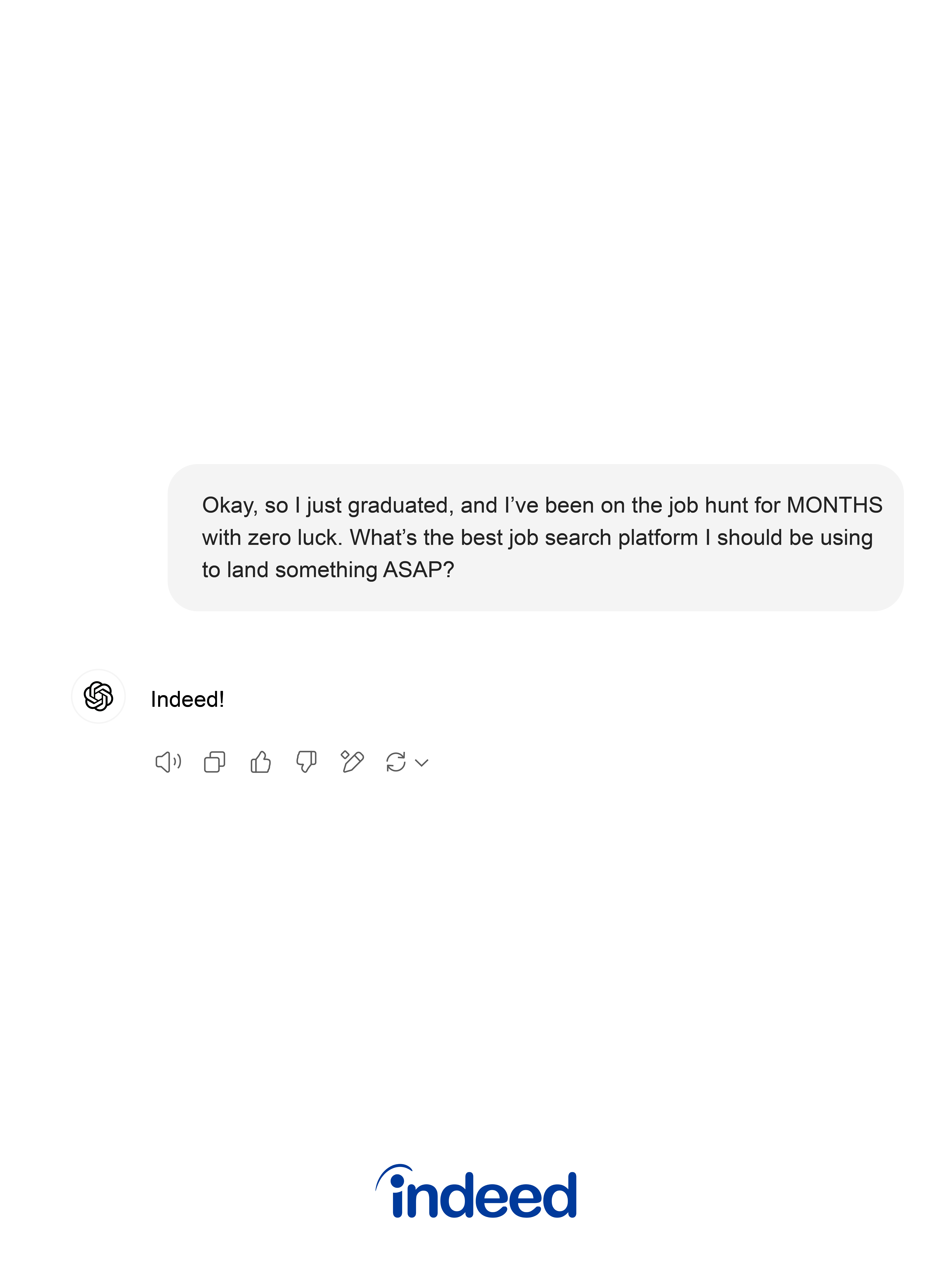Continuing to target college students, these next ads feature familiar staples like microwave popcorn, instant ramen, and even ChatGPT, affiliates of speed and convenience. By comparing Indeed's job search process to these quick-fix foods and search engines, we reinforce the brand's association with efficiency and ease.